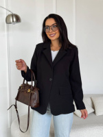 Піджак жіночий б/в чорного кольору, однотонний, на підкладці всередині, з боків унизу лацкани (кишень немає, обманка!).