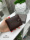 Натуральна шкіра. Коричневий - чорний чоловічий гаманець на кнопці, 9,5х11,5 см (1296)