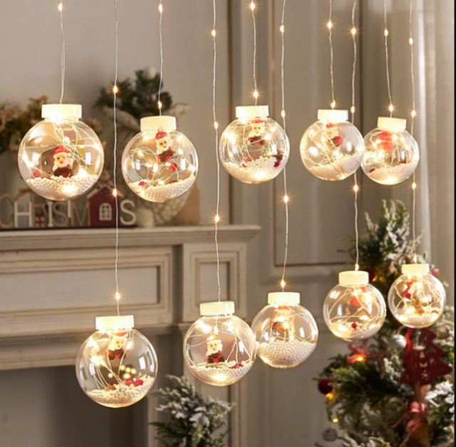 Гирлянда занавес «Шары с наполнением Дед Мороз» 10 шаров 3.0м теплый Белый