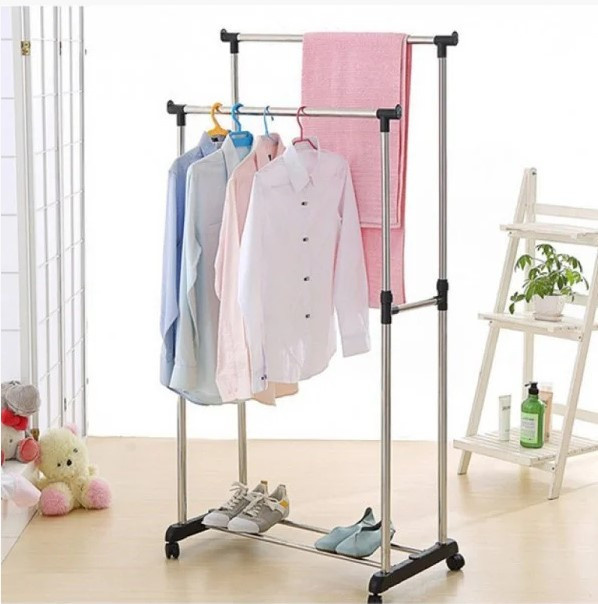 Універсальна міцна Подвійна підлогова пересувна стійка для одягу Double-Pole 8006