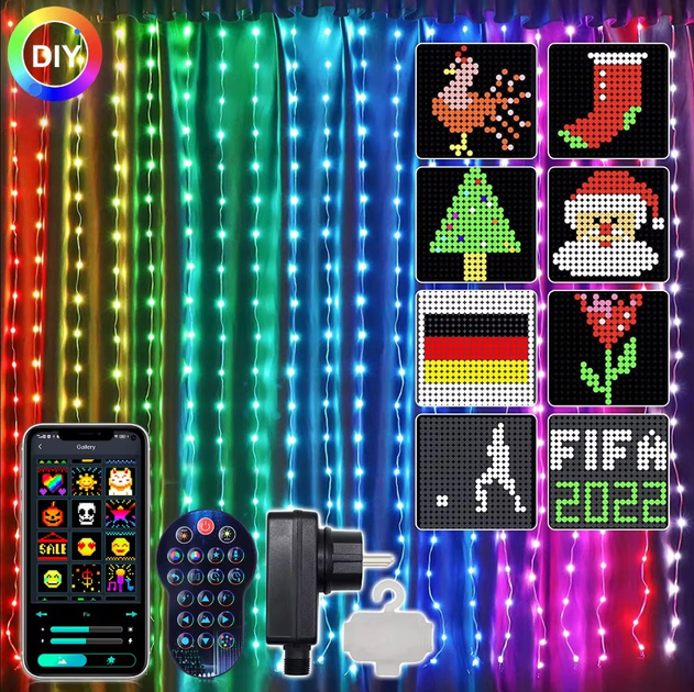 Смарт гірлянда штора 2*2 м 400 LED RGB, керування телефоном чи пультом (SFK-07)