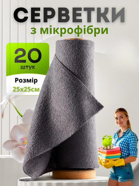 Серветки з мікрофібри в рулоні 20 шт багаторазові, без ворсу, суперпоглинаючі, 25×25 см