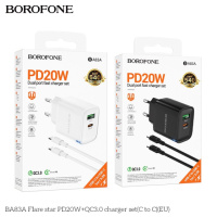 Мережевий Зарядний Пристрій Borofone BA99A 1USB-C PD/QC 20W+Type-C to Type-C