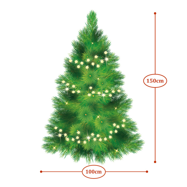 Наклейка Елка с огоньками 100*150 см на стену Елка на прозрачной основе, учитывайте цвет поверхности