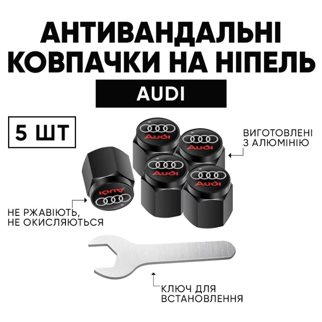 Защитные колпачки на ниппеля AUDI (Ауди) 5 шт + ключ