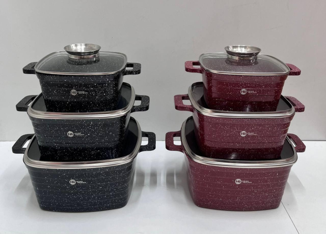 Набор квадратных казанов Higher Kitchen HK 322 на 6 предметов (Красный, Черный)