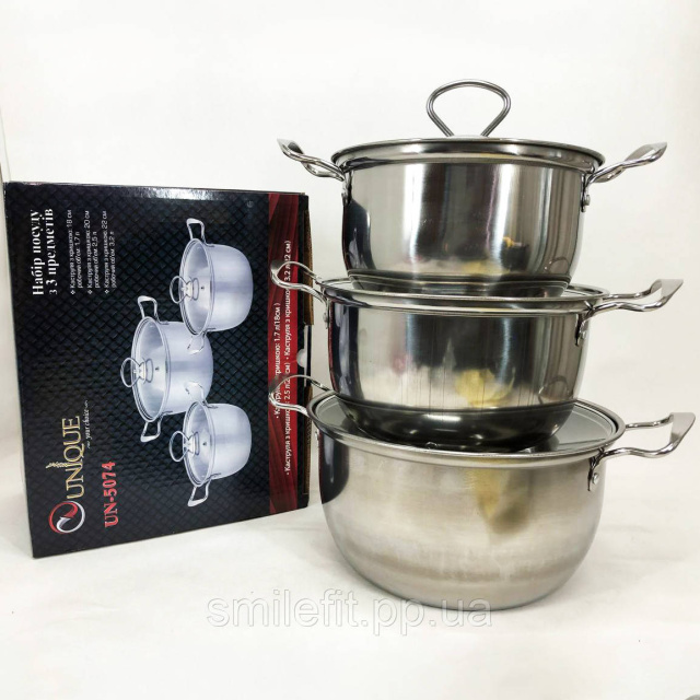 Набір каструль із нержавіючої сталі з кришками UNIQUE UN-5074, набір посуду для електричних плит