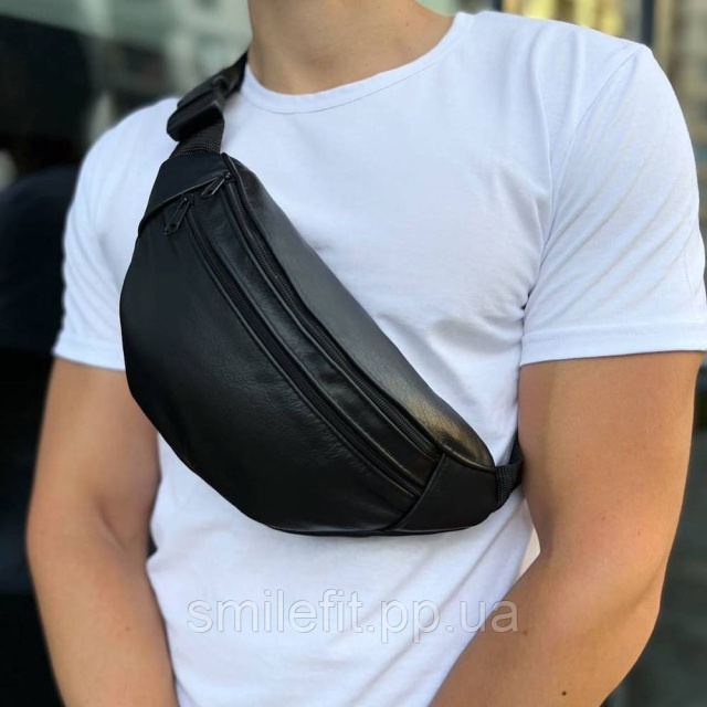 Бананка з натуральної шкіри, сумка чоловіча-жіноча барсетка чорна сумочка