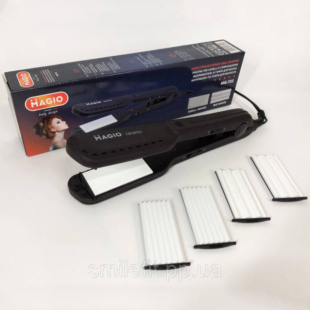 Щипці для волосся MAGIO MG-722 з насадками для гофре, Плойка вирівнювач, Випрямляч для волосся 2в1