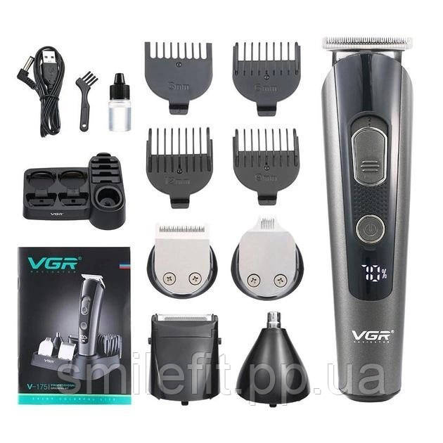 Професійна бездротова машинка для стрижки волосся VGR V-175 тример для бороди та вусів з насадками