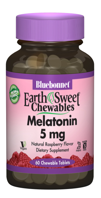 Мелатонін 5мг, Смак Малини, Earth Sweet Chewables, Bluebonnet Nutrition, 60 жувальних таблеток
