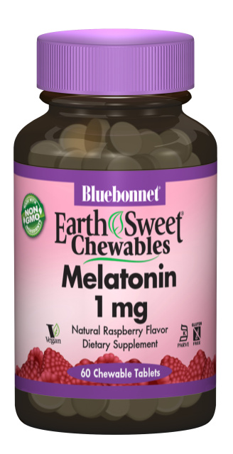 Мелатонін 1мг, Смак Малини, Earth Sweet Chewables, Bluebonnet Nutrition, 60 жувальних таблеток