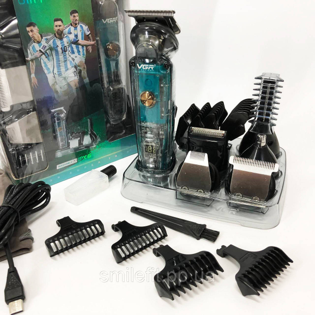 Машинка для стрижки волосся, носа, бороди, бритва VGR V-102 5в1 бездротовий триммер з дисплеєм