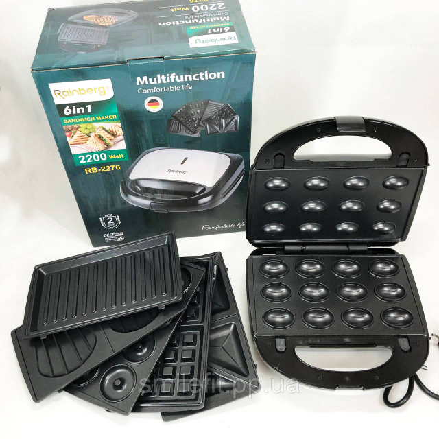Мультимейкер бутербродниця 6 в 1 Rainberg RB-2276 знімні форми з антипригарним покриттям 2200 Вт