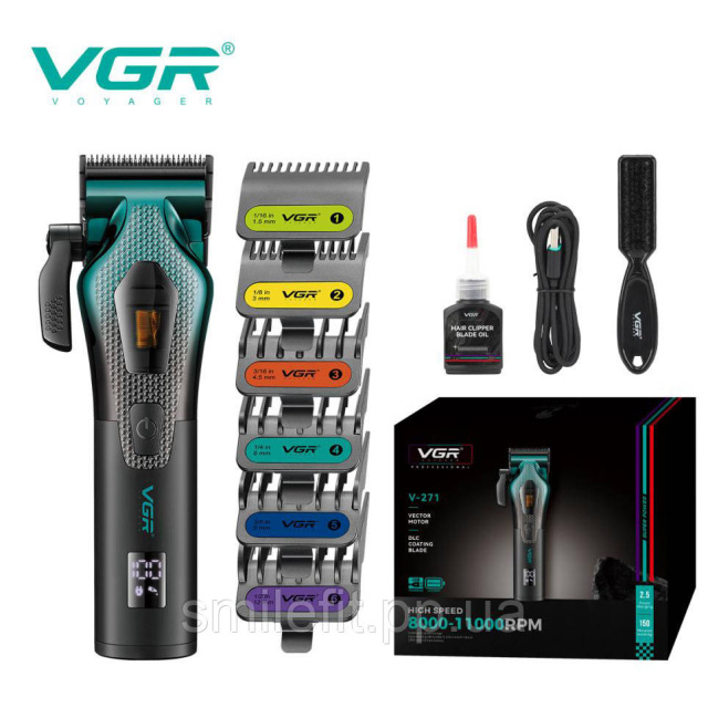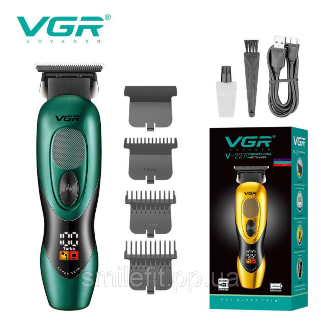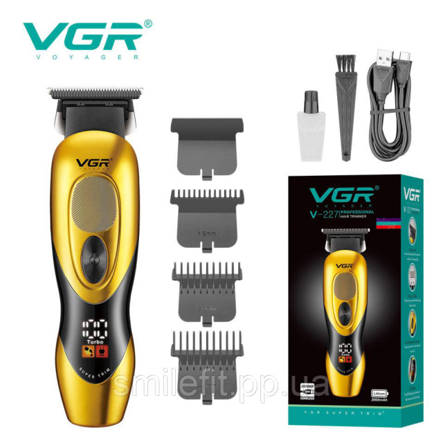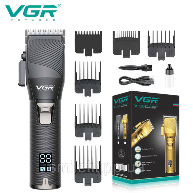 Акумуляторна машинка для стрижки волосся VGR V-280 з дисплеєм та насадками якісна. Колір: чорний