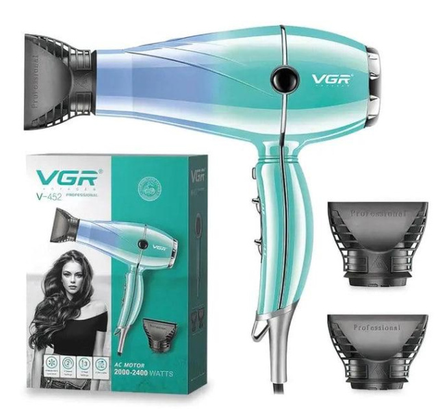 Фен для сушки укладки волос VGR V-452 электрофен с двумя концентраторами 2400 Вт