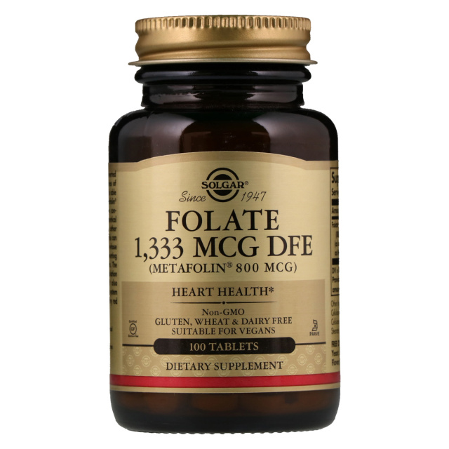 Фолієва Кислота (В9), Метафолін, 800 мкг, Metafolin, Solgar, 100 таблеток