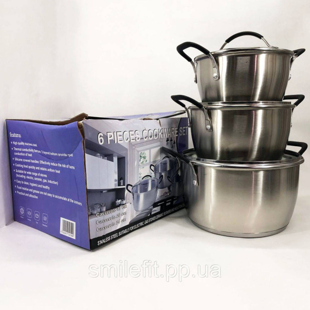 Набір каструль 6 предметів LB-1891 із нержавіючої сталі зі скляною кришкою, набори каструль