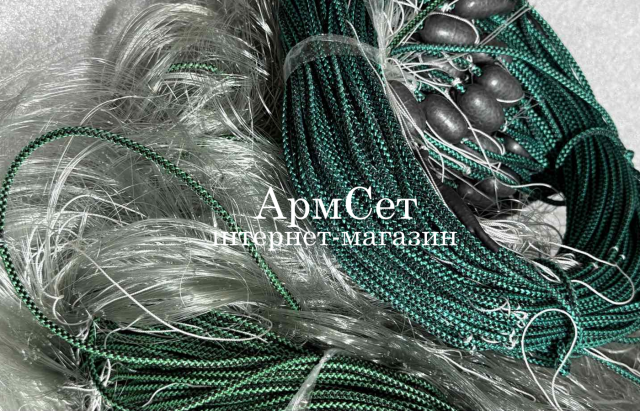 Одностенная сеть. Ø 38мм; h 3.5м; длина 70м; 0.15 леска. Титан (промышленный лов)