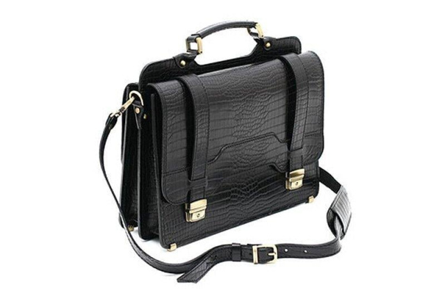 Портфель ручної роботи з шкіри під крокодила Чорний (1939517751)