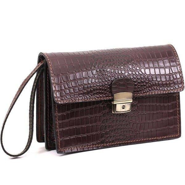 Барсетка з шкіри під крокодила ручна робота Коричневий (1939512666)