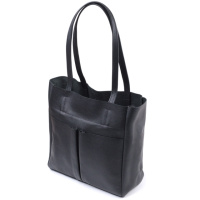 Зручна сумка-шоппер із натуральної шкіри 722845 Чорна