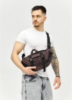 Велика чоловіча поясна сумка бананка чорна тканева принт