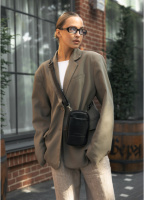 Чорна шкіряна жіноча сумка для телефону