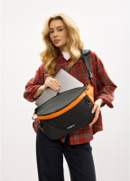 Жіноча cумка бананка для ноутбука 13 чорно-помаранчева