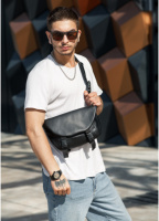 Жіноча сумка на пояс бананка шкіряна чорнa
