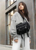 Велика жіноча поясна сумка бананка чорна тканева