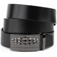 Ремень мужской с пряжкой автомат и силуэтом под экзотику Vintage 20300 Черный