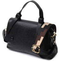 Стильная женская сумка с интересным клапаном из натуральной кожи Vintage 22252 Черная