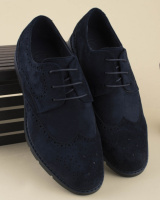 Чоловічі темно-сині туфлі з еко-замші на шнурівці