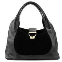 Жіноча містка шкіряна сумка на плече із замшевою вставкою 7555A-Y