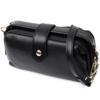 Класична шкіряна сумка з оригінальною плечовою лямкою 722405 Чорна