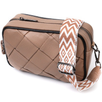 Модна шкіряна сумка з плетіннями для стильних жінок 722409 Бежева