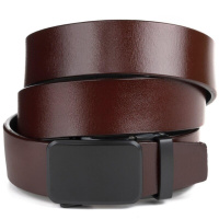 Ремінь чоловічий з чорною пряжкою автомат 720271 Коричневий