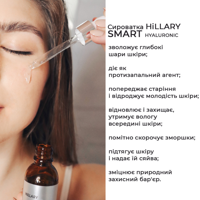 - Сироватка HILLARY SMART HYALURONIC, 30 мл;