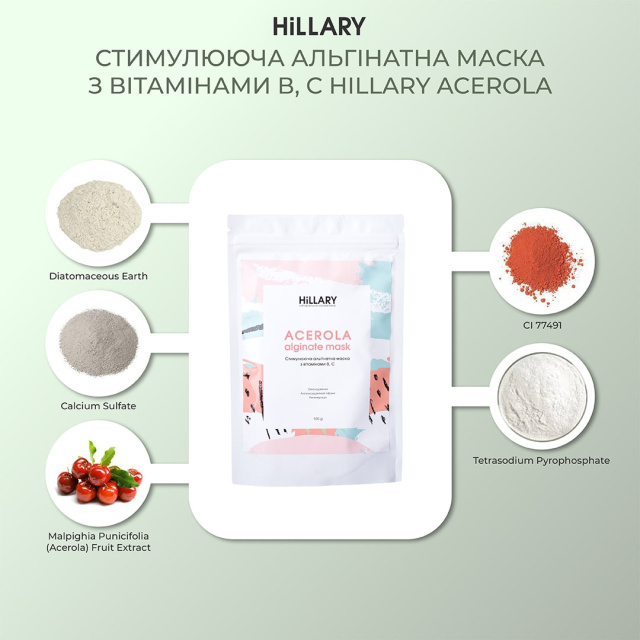 - Стимулююча альгінатна маска з вітамінами В, C Hillary Acerola, 100 г;