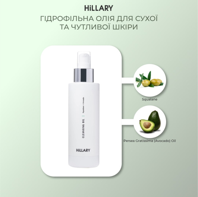 Гідрофільна олія для сухої та чутливої шкіри Hillary Cleansing Oil Squalane + Avocado oil: