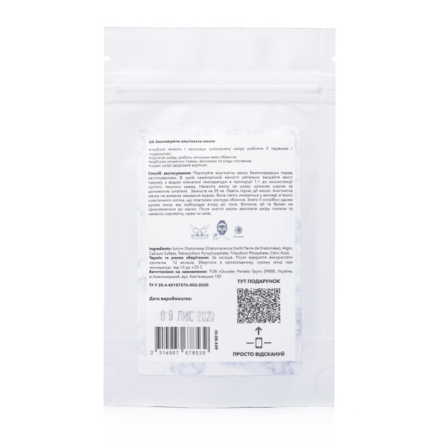 Альгінатна маска не потребує змивання водою. Через 15-20 хвилин вона легко знімається у вигляді м'якого пластичного зліпка, що повторює контури обличчя або тіла. Зняти її потрібно одним рухом знизу від підборіддя вгору до чола. Волосся, вії та брови не приклеюються до маски, тому зняття буде легким.