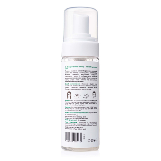 Очищуюча пінка для жирної та комбінованої шкіри Hillary Cleansing Foam Tamanu + Jojoba oil, 150 мл;