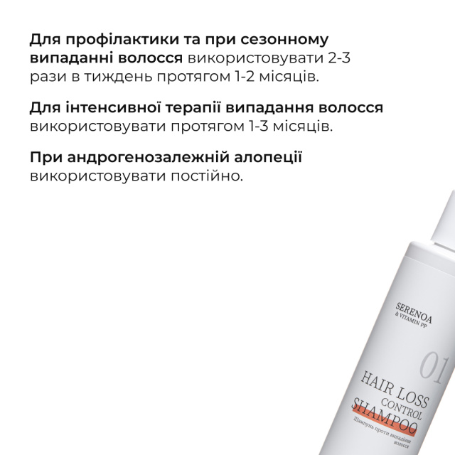 !!! Радимо використовувати у комплексі з сироваткою та кондиціонером проти випадіння волосся, особливо у випадках пов'язаних з андрогенним випадінням.