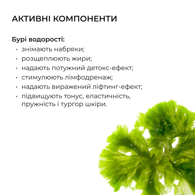 - сприяє покращенню лімфотоку, розщепленню жирових відкладень, виведенню рідини та токсинів, таким чином усуваючи основні фактори утворення целюліту;