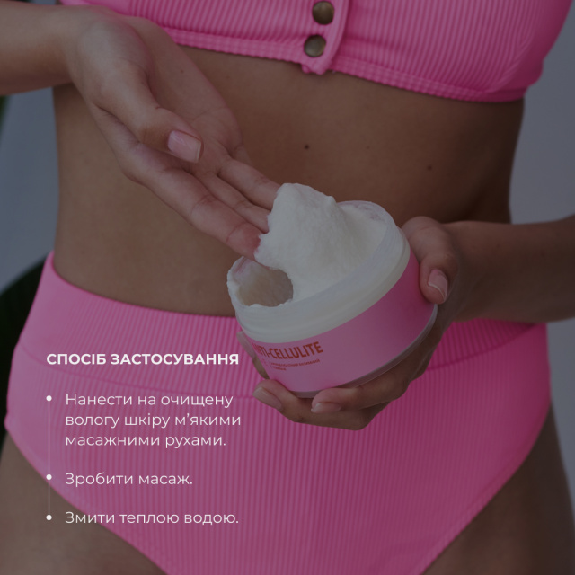 Курс для антицелюлітного масажу допомагає боротися з целюлітом завдяки масажній дії та вмісту ензимного антицелюлітного комплексу допомагає в контуруванні тіла, а також допомагає в спаленні надлишкових жирових відкладень.