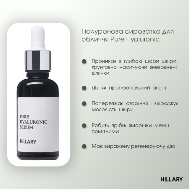- Гіалуронова зволожуюча сироватка Hillary Pure Hyaluronic, 30 мл;