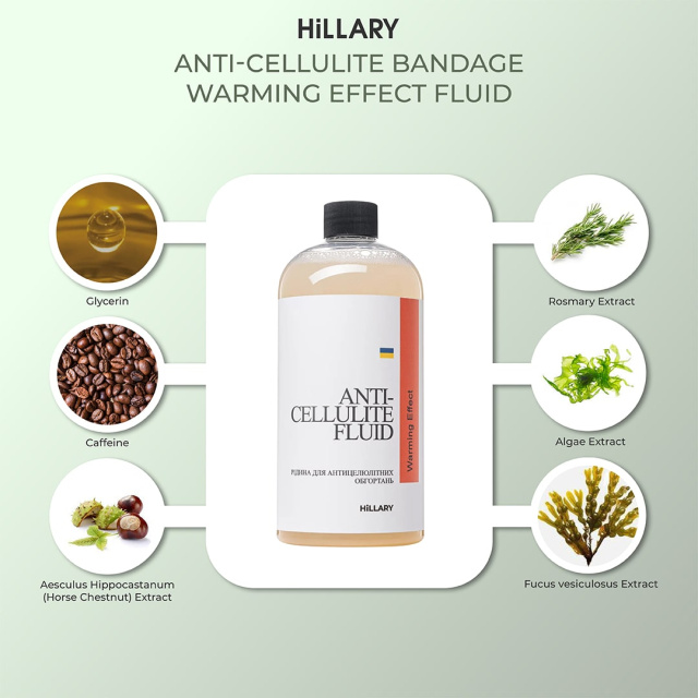 Рідина для антицелюлітних обгортань з розігрівальним ефектом Hillary Anti-cellulite Bandage Warming Effect Fluid, 500 мл, Київ
