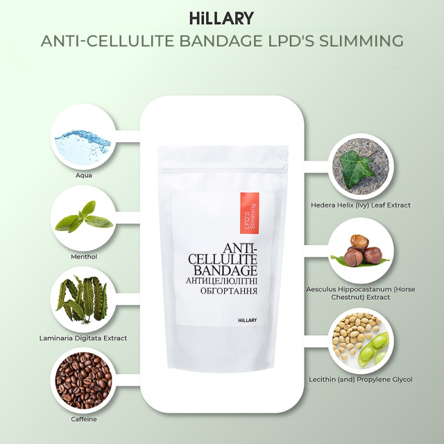 - Антицелюлітні обгортання з розігрівальним ефектом Hillary Anti-cellulite Bandage Warming Effect (1 уп);