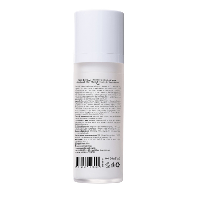 - Крем-флюїд для інтенсивної ревіталізації шкіри з вітаміном С Hillary Vitamin C Intensive Skin Revitalization Fluid, 30 мл.